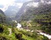 Yumthang Valley situated at 3,564 metres (11,800) is at a distance of 150 km from Gangtok. It is beautiful place and beautiful valley and renounced for rhododendron flower. It is popularly known as 'Valley of Flowers'. It is also home to the Shingba Rhododendron Sanctuary, and has over twenty-four species of the rhododendron, the state flower of Sikkim. A direct journey to Yumthang is not feasible as roads are commonly foggy and it becomes dark very early around 5:30 pm. A trip to the Valley takes around two hours from Lachung, which is about 125 km from Gangtok.